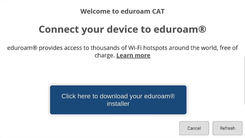 Press the “Set up” button next to eduroam, and the eduroam webpage will open.